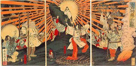 「岩戸へお入りになりたのを、だまして岩戸を開いたのでありたが、岩戸を開くのが嘘を申して、だまして無理に引っ張りだして、この世は勇みたらよいものと、それからは天のうずめの命どのの、嘘が手柄となりて、この世が嘘でつくねた世であるから、神にまことがない故に、人民悪くなるばかり」(大本神諭 明治38年旧4月26日)