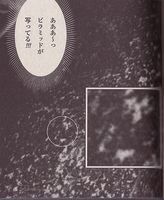 それは、太陽の陸地より浮かんで移動する、空中ピラミッド(エノクの街!?)の写真です!(『超極秘ファイルASKA』(2006年、学習研究社刊)より抜粋)