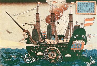 明治維新の少し前には何が起きたかというと・・・開国をせまった二度にわたるペリーの黒船来航です。